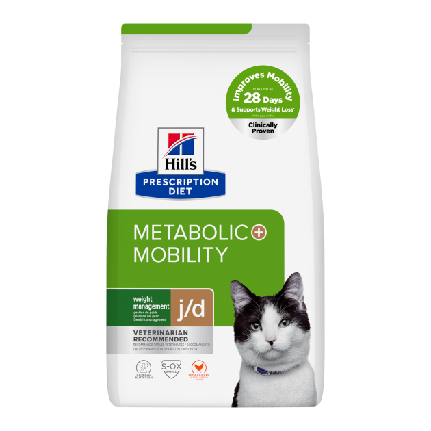 Ergänzen Sie die Ernährung Ihrer Katze mit Hill’s Prescription Diet Metabolic + Mobility Trockenfutter für Katzen, da eine frühzeitige Erkennung von Osteoarthritis und die Empfehlung des richtigen Futters in Verbindung mit einer multimodalen Behandlung Beschwerden lindern und die Lebensqualität verbessern können.
