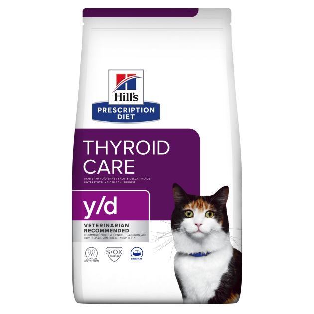 Hill's Prescription Diet Feline y/d Thyroid Care für Katzen mit einer Schilddrüsenüberfunktion.