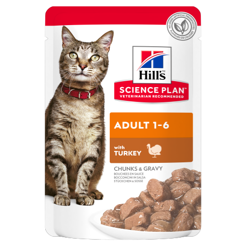 Hill's™ Science Plan™ Feline Adult Truthahn, macht Ihre Katze glücklich. Als Alleinfuttermittel enthält jeder Frischebeutel genau die richtige Kombination aus Vitaminen und Mineralstoffen, die Ihre Katze benötigt, um bei bester Gesundheit zu bleiben.