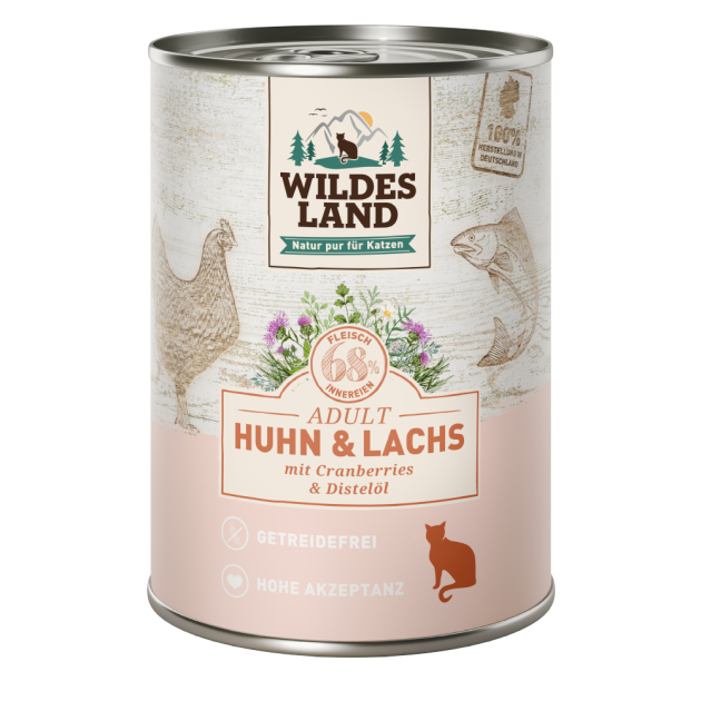 Wildes Land - Feline Adult Huhn & Lachs mit Cranberries Dose