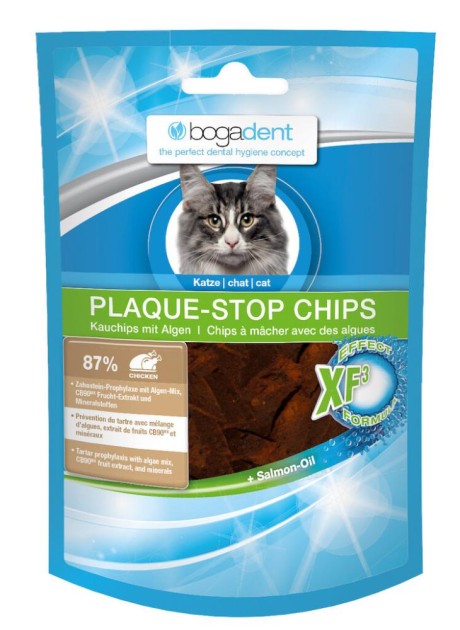 Bogadent Plaque-Stop Chips sont de délicieuses chips pour l'hygiène dentaire des chats